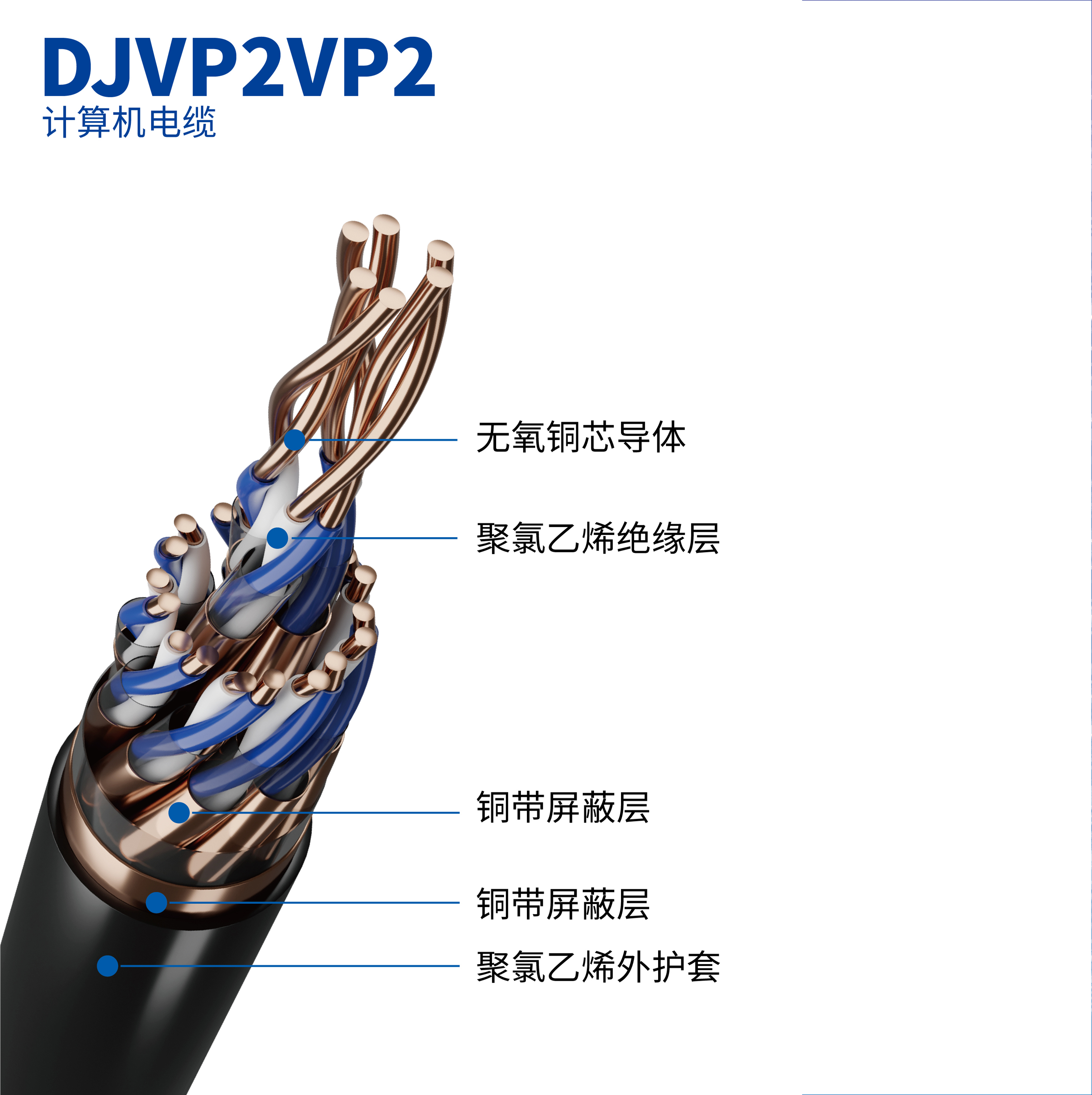 字母含義:DJ:計算機與儀表屏蔽電纜;V:聚氯乙烯絕緣護(hù)套;Y:聚氯乙烯絕緣護(hù)套;YJ:交聯(lián)聚烯烴絕緣;P:銅絲編織屏蔽;P2:銅帶鎧裝;P3:鋁塑復(fù)合帶屏蔽
