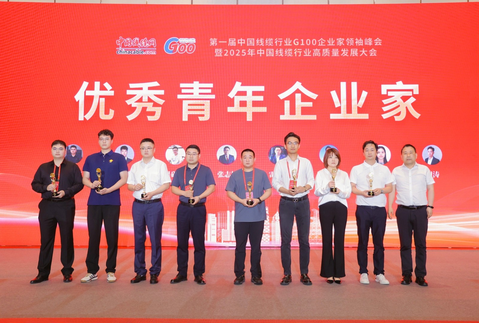隨后,為嘉獎(jiǎng)過(guò)去一年對(duì)線纜行業(yè)高質(zhì)量發(fā)展作出巨大貢獻(xiàn)的企業(yè)及個(gè)人,大會(huì)在晚宴上揭曉了獲獎(jiǎng)榜單并舉行了隆重的頒獎(jiǎng)儀式。金聯(lián)宇電纜集團(tuán)總經(jīng)理林生達(dá)憑借卓越的領(lǐng)導(dǎo)力、創(chuàng)新實(shí)踐與行業(yè)貢獻(xiàn),榮獲“優(yōu)秀青年企業(yè)家”及 “杰出青年”兩項(xiàng)重量級(jí)榮譽(yù)!