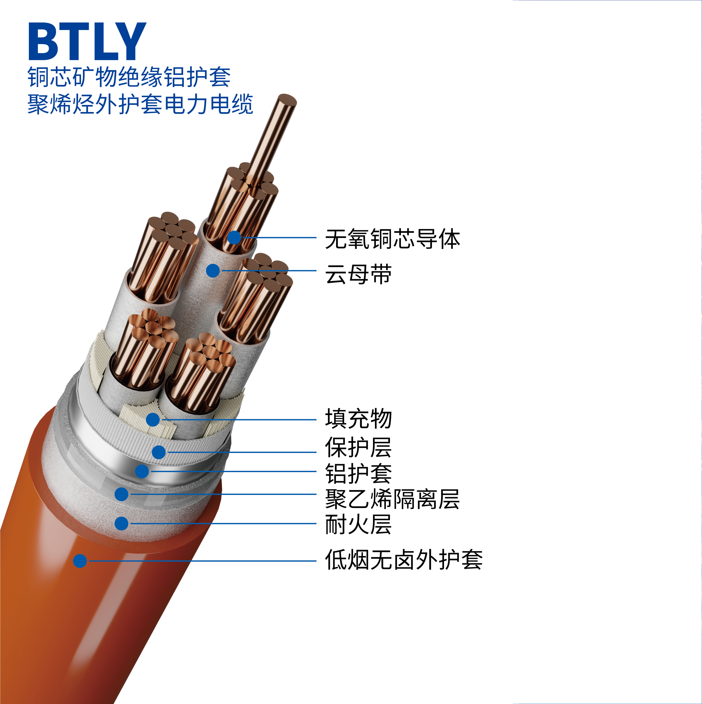 字母含義:B:礦物絕緣電纜系列代號(hào);T:銅導(dǎo)體;L:鋁護(hù)套;Y:聚烯烴外護(hù)套