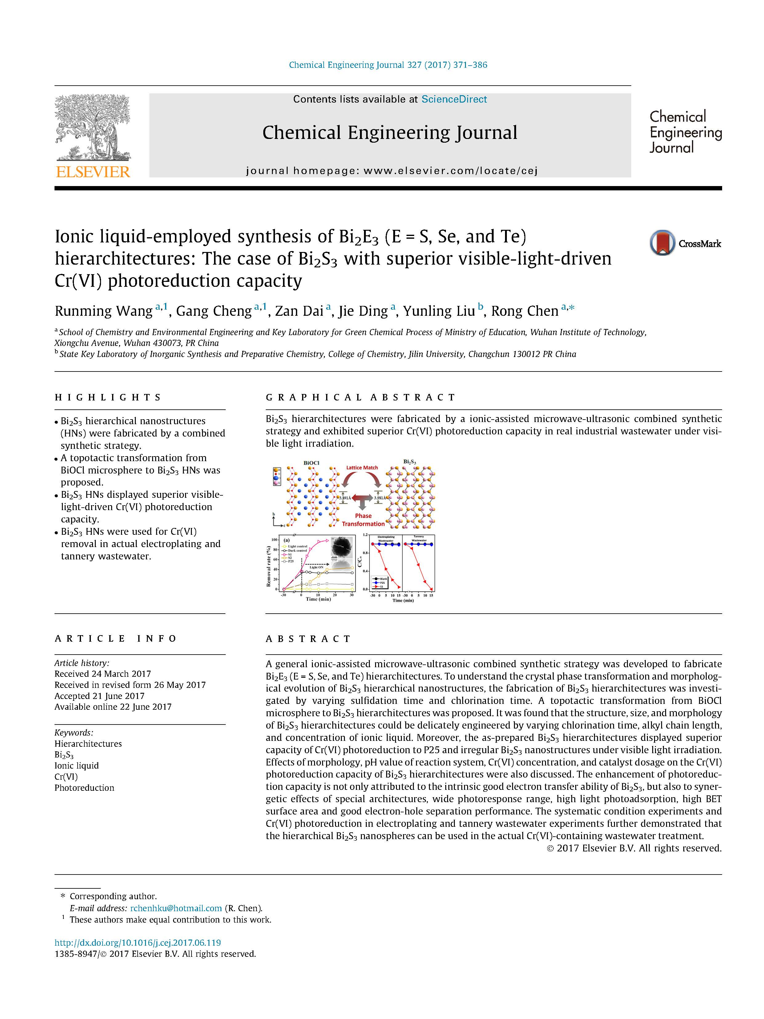 從生物陶瓷中轉(zhuǎn)化為乳酸的轉(zhuǎn)化提出了Bi2S3分層結(jié)構(gòu)的微球,發(fā)現(xiàn)結(jié)構(gòu)、尺寸和形態(tài)Bi2S3分級(jí)結(jié)構(gòu)可以通過(guò)改變氯化時(shí)間、烷基鏈長(zhǎng)和離子液體的濃度。此外,所制備的Bi2S3分層體系結(jié)構(gòu)顯示出眾可見光照射下Cr(VI)光還原到P25和不規(guī)則Bi2S3納米結(jié)構(gòu)的容量。形態(tài)、反應(yīng)體系pH值、Cr(VI)濃度和催化劑用量對(duì)Cr(VI)的影響還討論了Bi2S3分層結(jié)構(gòu)的減光能力。光還原能力的增強(qiáng)不僅歸因于Bi2S3的固有良好的電子轉(zhuǎn)移能力,而且還歸因于特殊結(jié)構(gòu)的協(xié)同作用、寬光響應(yīng)范圍、高光光吸附、高BET具有良好的表面面積和良好的電子空穴分離性能。