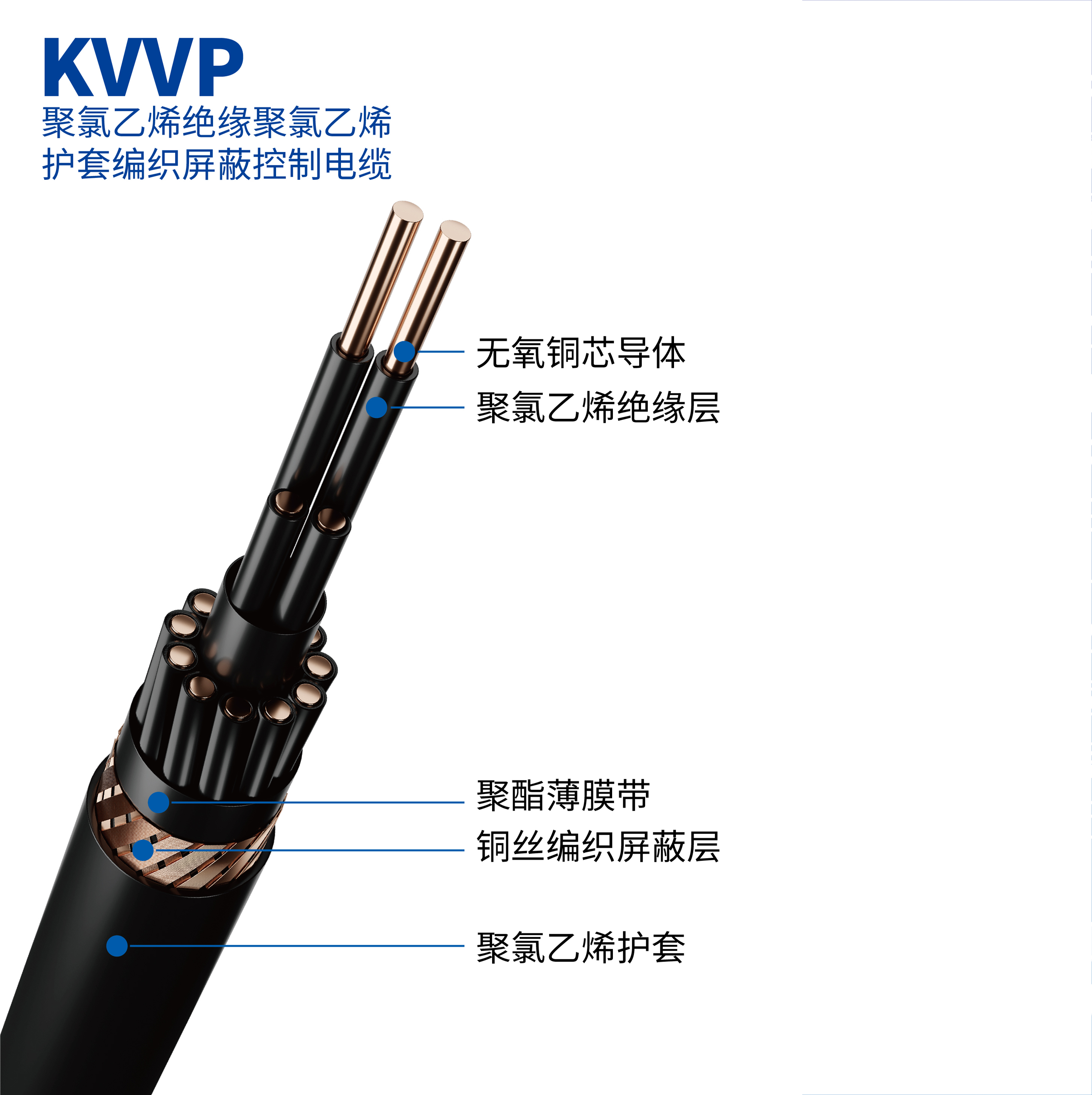 字母含義:K:控制電纜系列代號;第1個V:聚氯乙烯絕緣;第2個V:聚氯乙烯護套;P:編織屏蔽