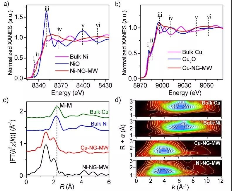 圖3. 石墨烯負(fù)載鎳、銅單原子的原子結(jié)構(gòu)表征