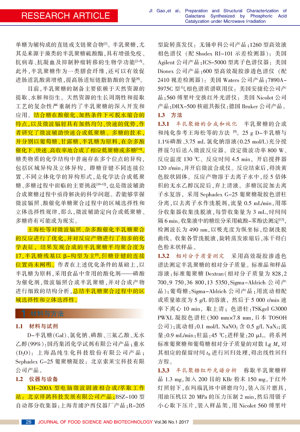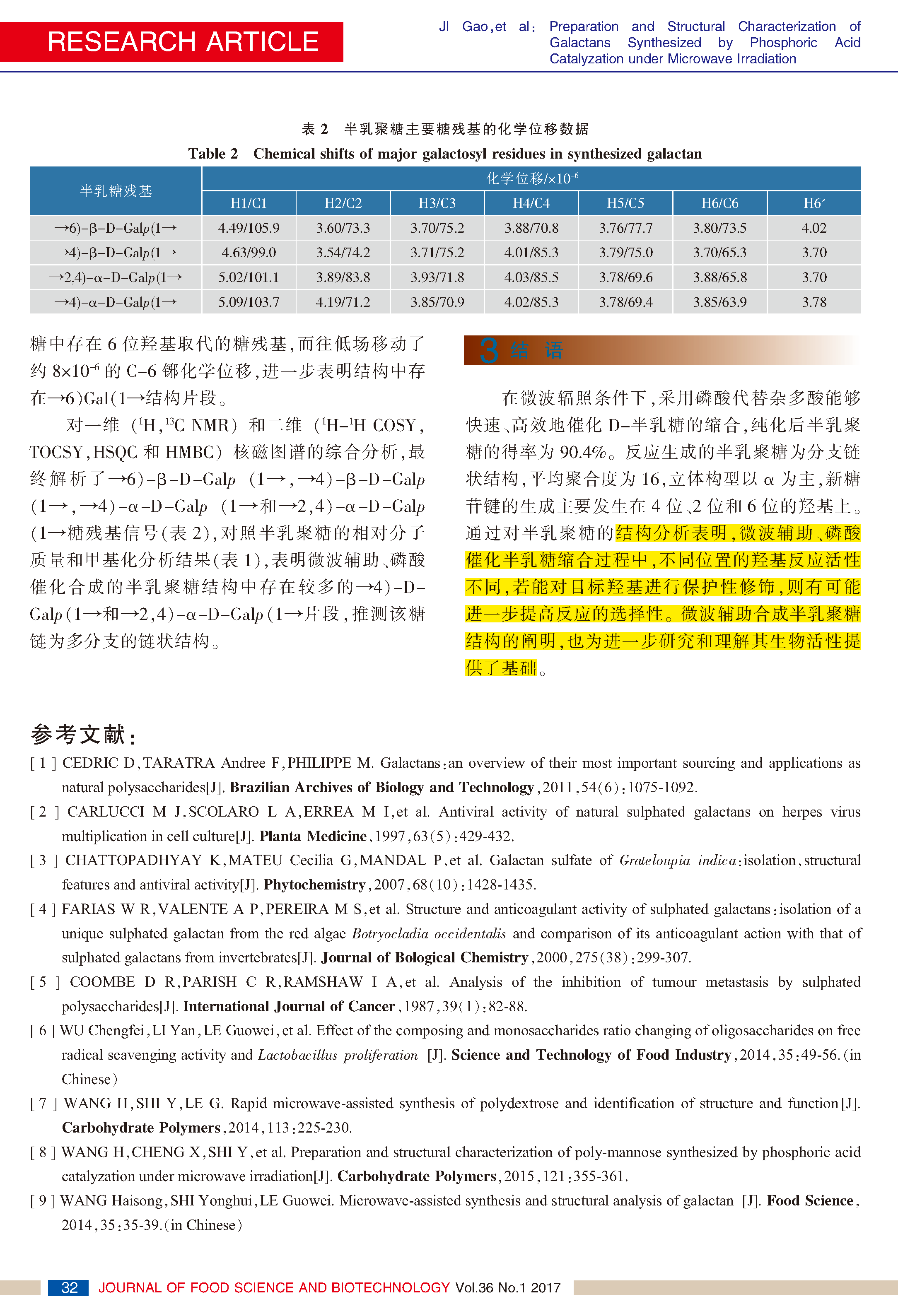 微波輔助、磷酸催化合成半乳聚糖的結(jié)構(gòu)分析