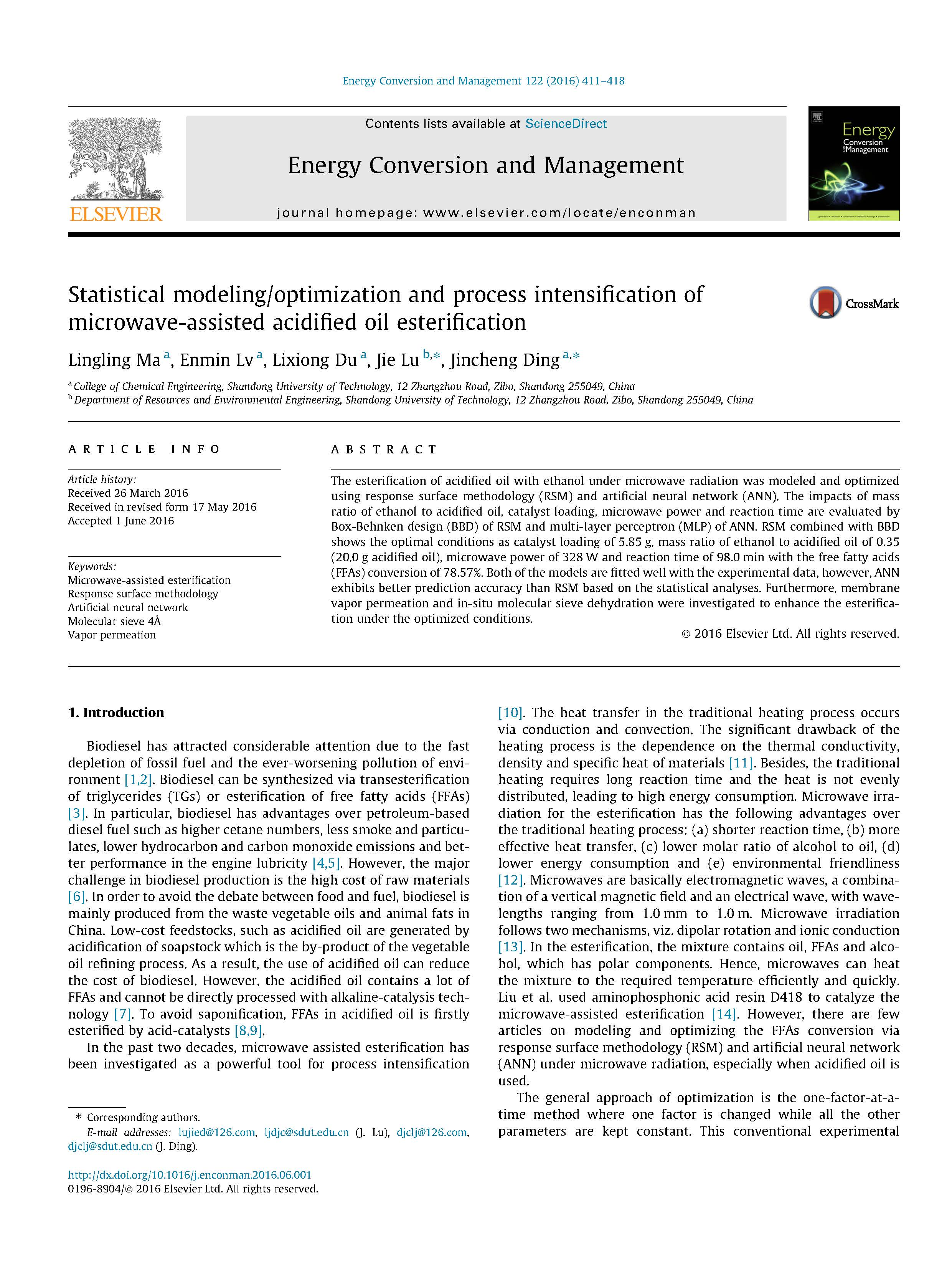 13 微波輔助酸化油酯化的統(tǒng)計(jì)建模/優(yōu)化和過程強(qiáng)化
