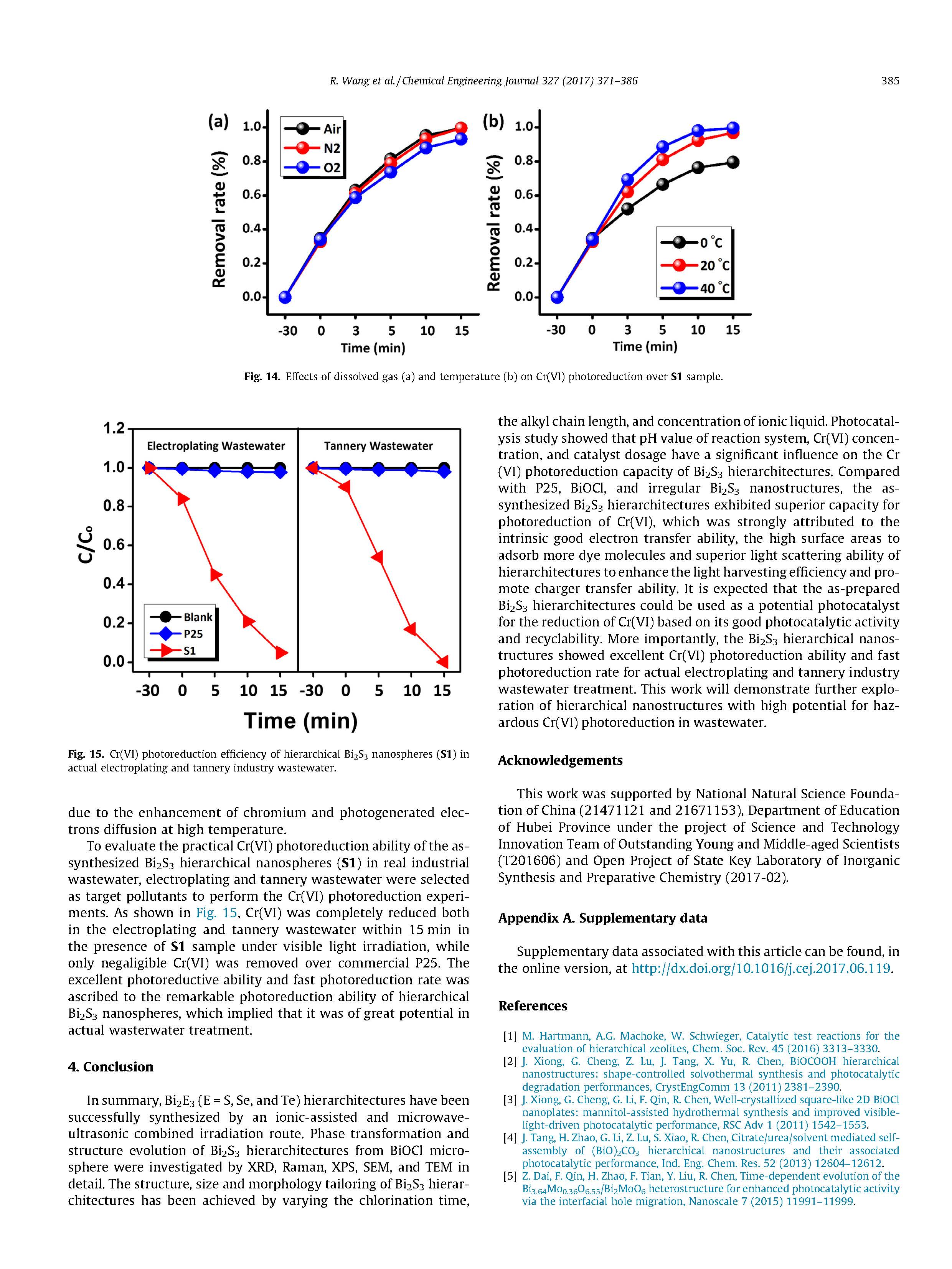 系統(tǒng)條件實(shí)驗(yàn)和在電鍍和制革廢水試驗(yàn)中的Cr(VI)光還原進(jìn)一步證明了該分級(jí)Bi2S3納米球可用于實(shí)際的含Cr(VI)的廢水處理中。
