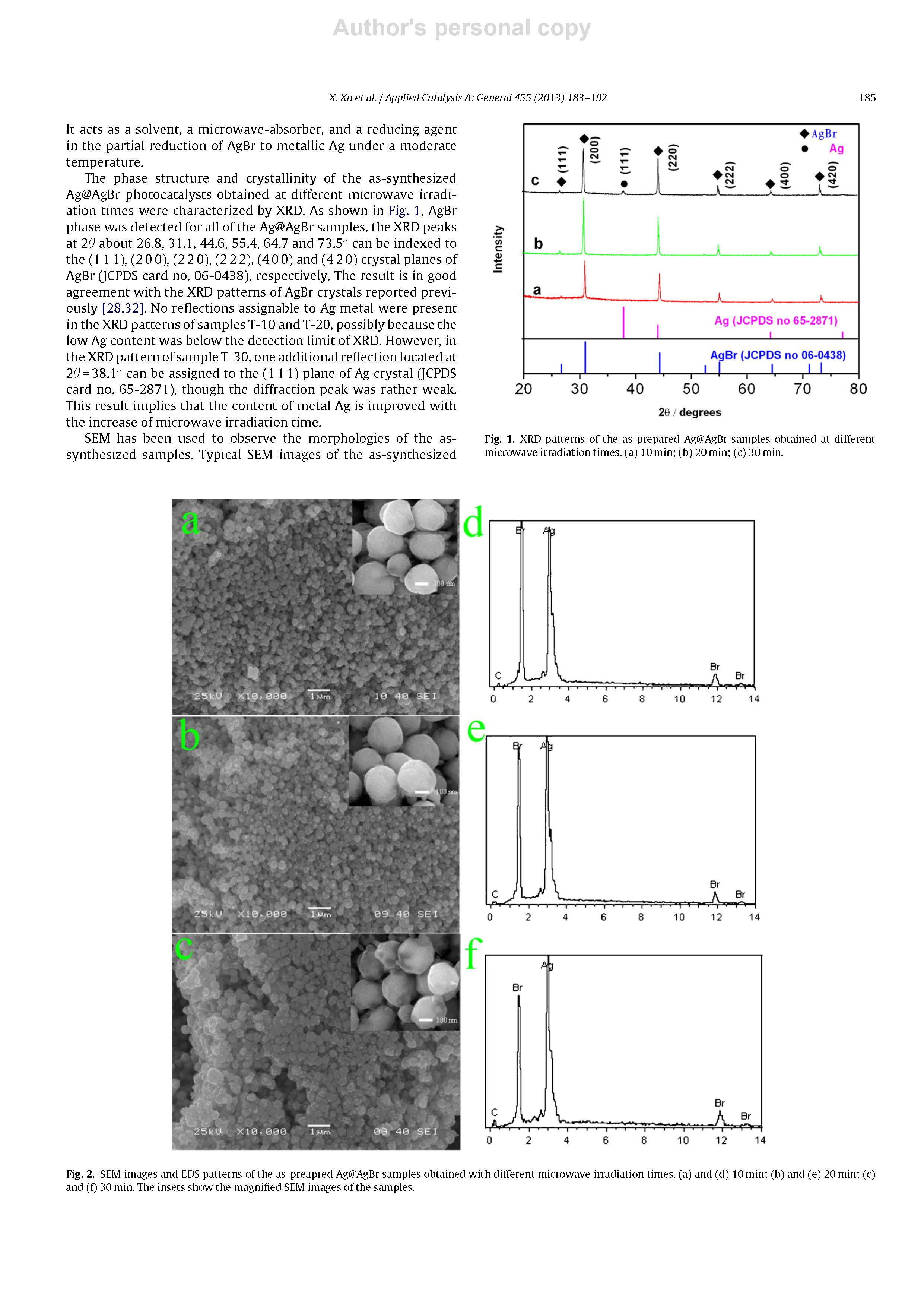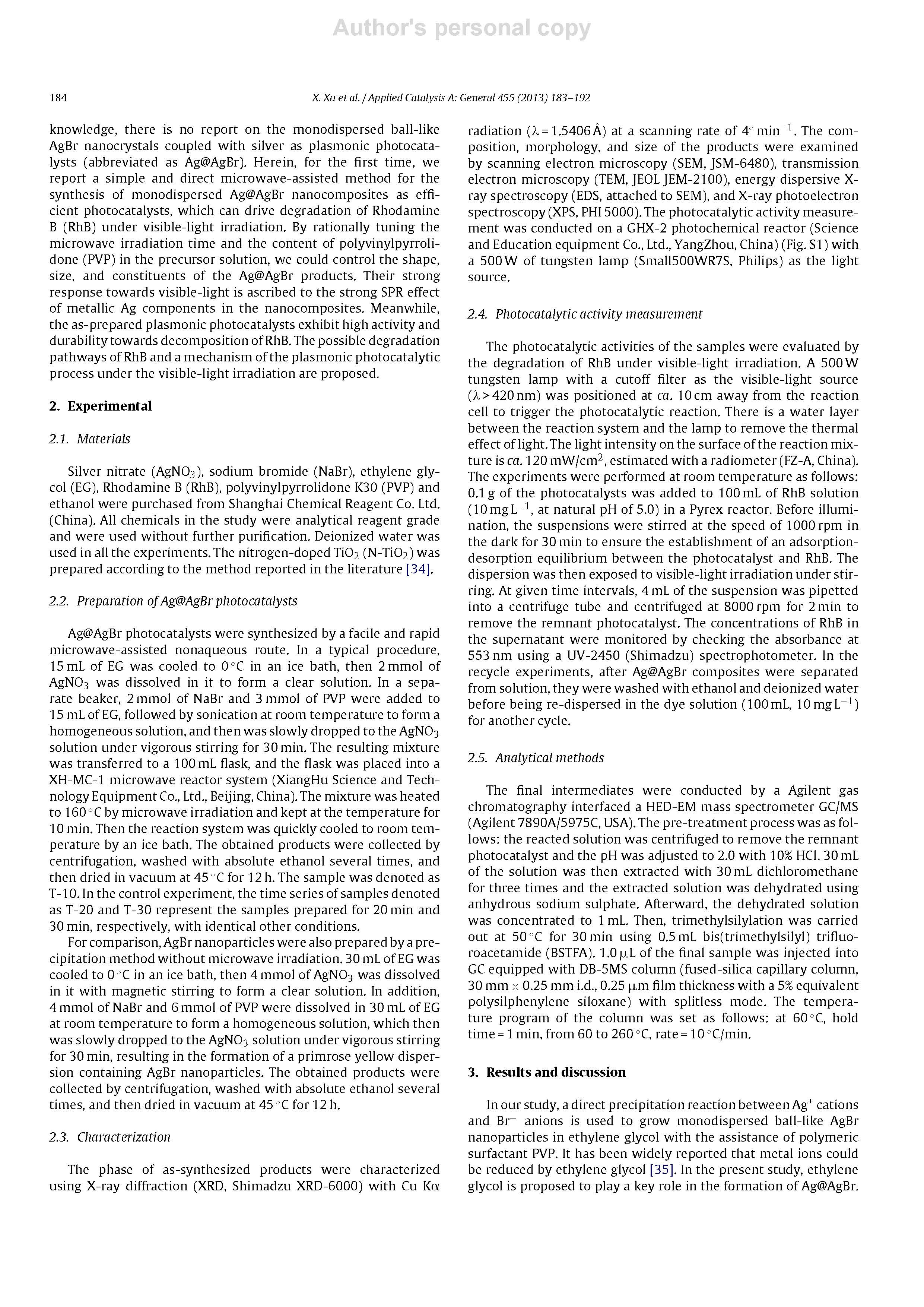 我們報(bào)告了一種快速一步微波輔助合成球形AgBr納米粒子(平均直徑約290 nm)的等離子體光催化劑,其表面固定著少量金屬Ag。