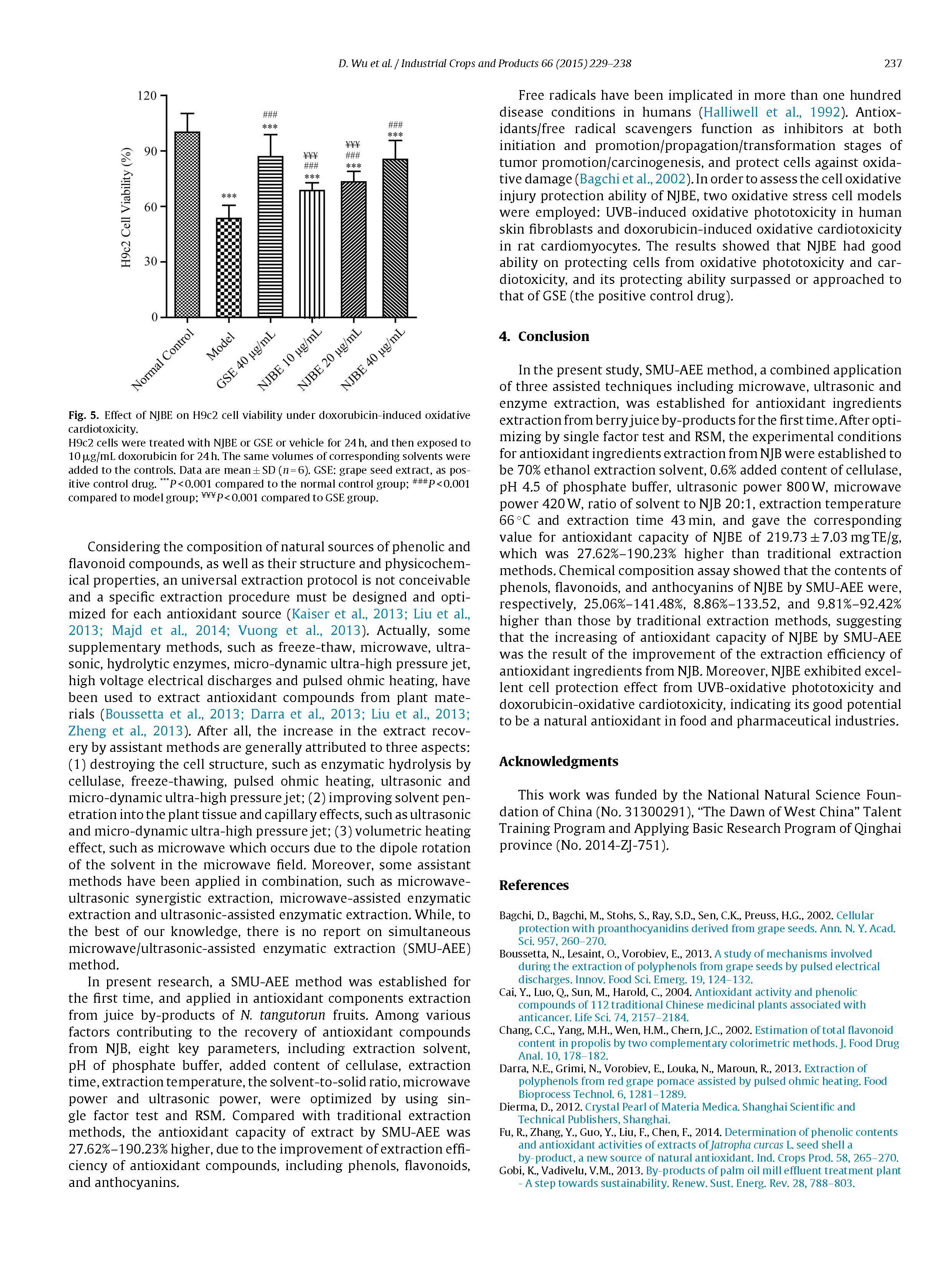 此外,抗氧化能力測定表明,NJBE對UVB-氧化光毒和阿霉素-氧化心臟毒性有較好的保護(hù)作用,其保護(hù)能力超過或接近葡萄籽提取物(陽性對照藥物),表明其具有良好的食品和制藥工業(yè)天然抗氧化劑的潛力。