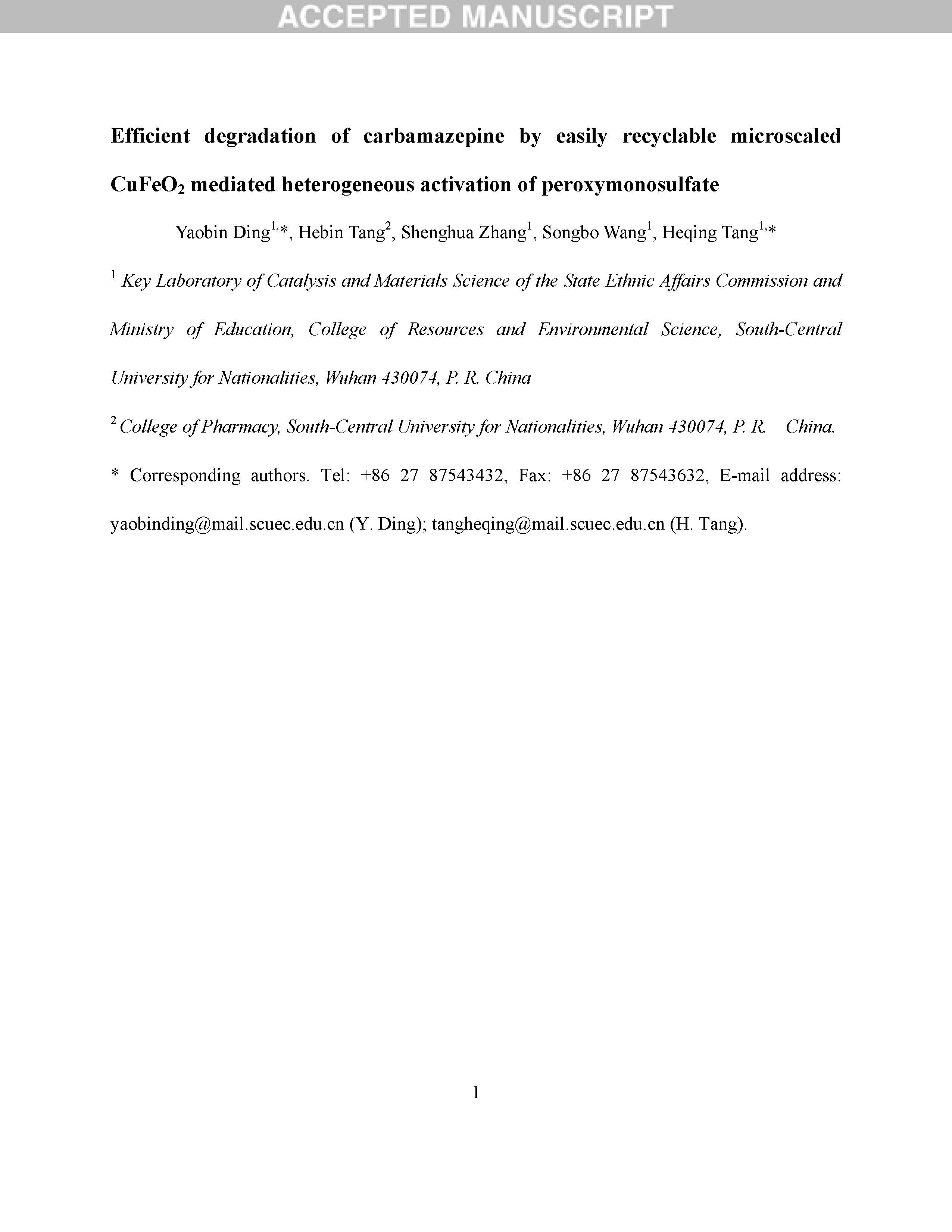這篇由中南民族大學等的研究學者完成,討論容易循環(huán)使用的微量CuFeO2介導的過氧單硫酸鹽的非均相活化可有效降解卡馬西平的論文,發(fā)表在一區(qū)重要期刊《Journal of Hazardous Materials》,影響因子:6.434。